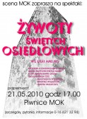 W dniu 21 maja br. (piątek) o godz 17.00 w sali 23 (I p) Miejskiego Ośrodka Kultury spektaklem "Żywoty świętych osiedlowych", zainauguruje swoją działalność, założona przez Pawła Srokę, "Scena MOK". Będzie to najprawdopodobniej pierwsza polska premiera na podstawie książki wrocławskiej pisarki Lidii Amejko, wydanej pod tym samym tytułem. W spektaklu wystąpią: Teresa Czyż, Małgorzata Wolańska, Krystyna Wolańczyk, Janina Iwasieczko. Scenariusz, reżyseria, scenografia - Paweł Sroka; aranż muzyczny - Wiktor Marut. Wstęp wolny.