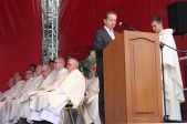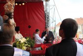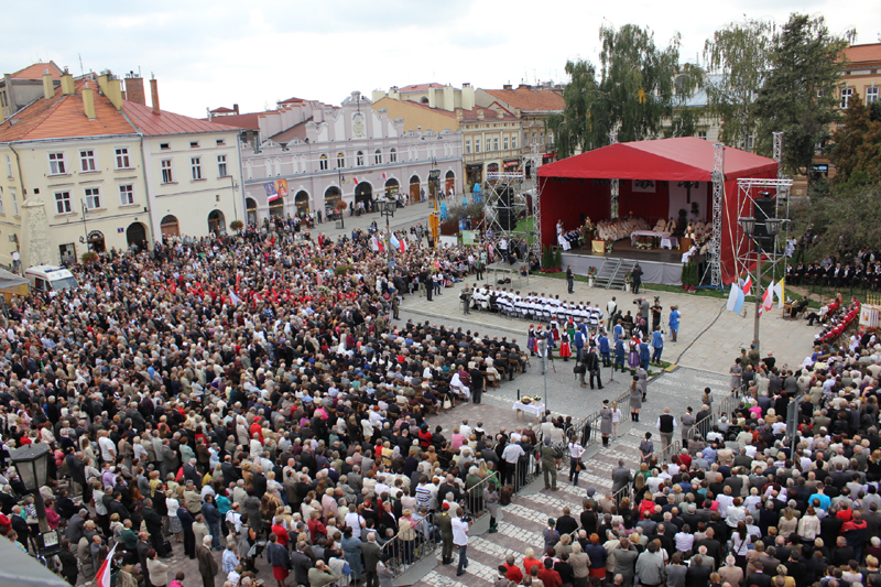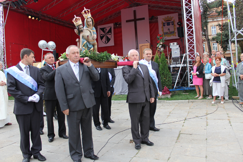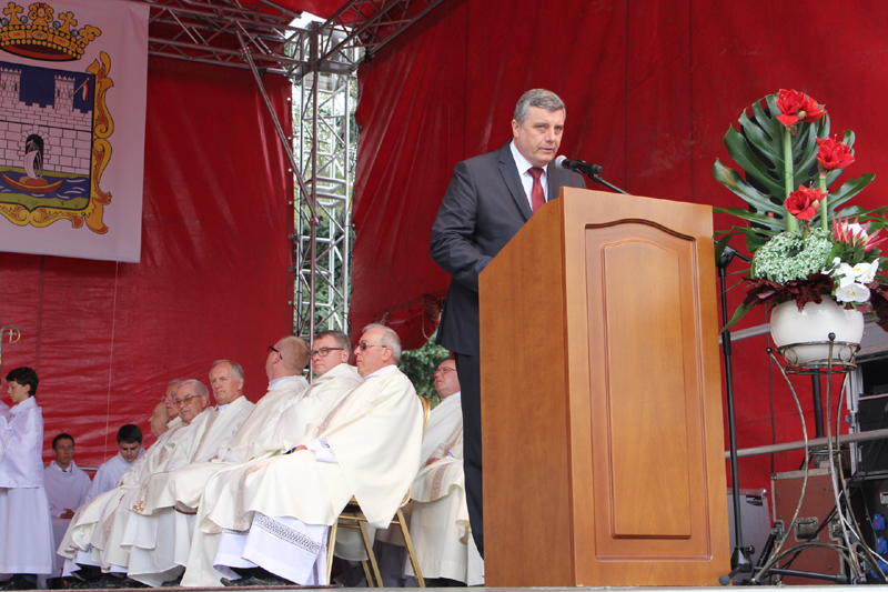 Na zakończenie liturgii za dar modlitwy dziękował zgromadzonym ks. bp senior Bronisław Dembowski z diecezji włocławskiej; głos zabrał także marszałek województwa podkarpackiego Władysław Ortyl, który podkreślił niezwykłą rangę tego wydarzenia w życiu parafii i wszystkich członków Kościoła Katolickiego. - Do cudownej figury modlą się setki wiernych, którzy przybywają do niej każdego dnia ze swoimi sprawami, prosząc Matkę Bożą o łaskę i szukając u niej pocieszenia. Jestem przekonany, że dziś, w dobie kryzysu wartości, którym hołdował i nadal hołduje Kościół, Bazylika i cudowna figura Matki Bolesnej z Jezusem będzie symbolem odwołującym się do tych podstawowych wartości - mówił marszałek. Z kolei o. prowincjał Krzysztof Popławski podziękował burmistrzowi za pomoc w przygotowaniu tej wyjątkowej uroczystości oraz zapewnił wszystkich zgromadzonych o swojej modlitwie.