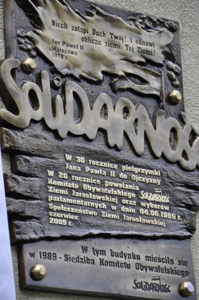 W niedzielę, 21 czerwca z okazji 30. rocznicy pierwszej pielgrzymki Jana Pawła II do Ojczyzny oraz 20. rocznicy powstania Komitetu Obywatelskiego „Solidarność” Ziemi Jarosławskiej i wyborów parlamentarnych 4 czerwca 1989 roku, miała miejsce uroczystość odsłonięcia tablicy pamiątkowej.
